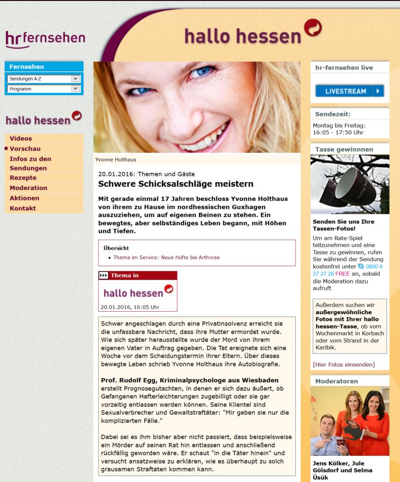 Erneut beim Hessischen Rundfunk: im Talk-Magazin „Hallo Hessen“.